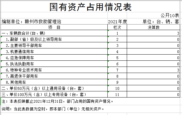 截止2021年12月31日,本单位国有资产占用情况见公开10表《国有资产占用情况表》。其中车辆中的特种专业技术用车是业务用车。