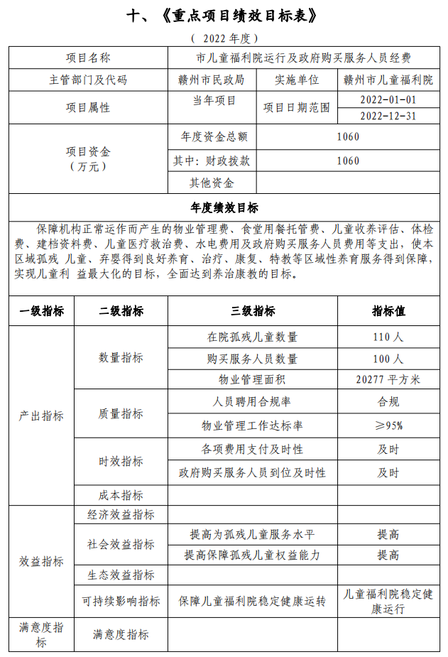 1.市儿童福利院运行及政府购买服务人员经费项目