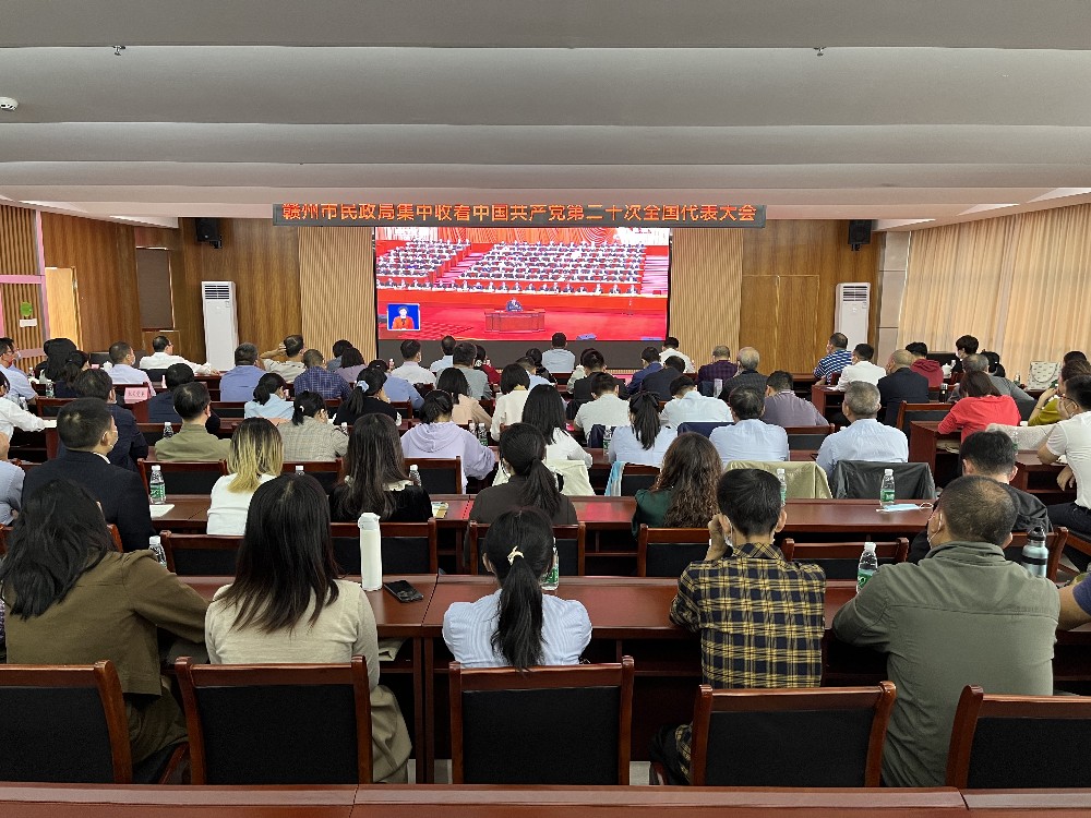 盛世迎盛会,扬帆起征程。10月16号上午10 时,中国共产党第二十次全国代表大会在北京人民大会堂开幕。市民政局全体干部职工集中收看党的二十大开幕大会盛况,认真聆听了习近平总书记代表十九届中央委员会所作的工作报告。局党组书记、局长赖木生和全体局领导及干部职工共120余人参加。