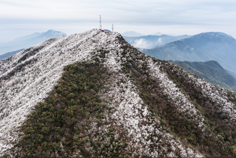 云海雪景 夏秋季节登临主峰,晨曦朦胧时,旭日初升、光芒四射,云海涌动,一派云山雾海的迷人景色,绚丽多彩,实为壮观,游人置身云海有“云在山中走,人在画中游”的感觉。每当冬暮春初,白雪皑皑,银装素裹,虽无北国的粗狂宽广,但有南国的纤秀。雪压青松翠竹、冰凌串串、晶莹明亮。