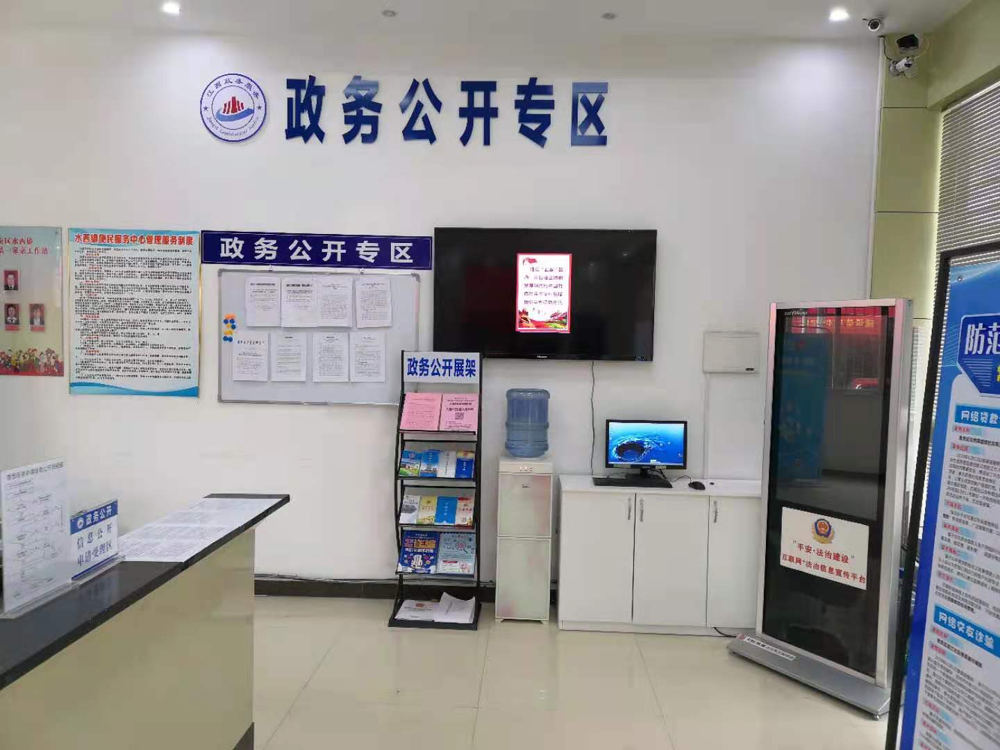 信息查阅区:设置政务公开专栏和政务公开展架,涉及政务公开相关政策文件,民政、医保、就业等政策知识宣传册,公示栏定期更新涉及与群众密切相关的重要工作和公告公示,同时通过电视屏幕滚动播放,群众可随时取阅,快捷查询。