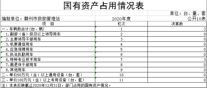 截止2020年12月31日,本站国有资产占用情况见公开10表《国有资产占用情况表》。其中车辆中的特种专业技术用车是业务用车。
